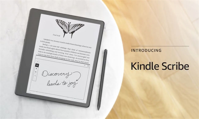 近些年越来越多品牌都推出了E Ink平板,这也促使电子阅读器行业的元老Amazon对自己的Kindle做出了些改变。 在今晨的年度硬件发布会上,他们端出了名为 Kindle Scribe 的新品。 如名字所示,这款配备了 10.2 吋、300ppi 屏幕的设备除了能供你阅读外还可用于记录。 它的机身侧面设有一支磁吸触控笔,你不用专门为其充电或同步,只要拿起来就能在 E Ink 面板上记笔记、书写或是给正在读的书进行标注了。 待到明年,你甚至可以在 Kindle Scribe 上打开微软的 Word 文档。